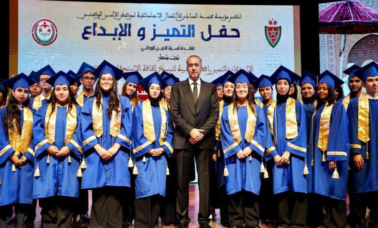وشهد الحفل تكريس تقليد سنوي يهم تكريم المتفوقين من ابناء واسر رجال الامن، حيث تم توزيع منح مالية وجوائز تقديرية على التلاميذ الذين حصلوا على اعلى المعدلات في امتحانات الباكالوريا برسم الموسم الدراسي 2024/2025، وشملت هذه المنح دعما جامعيا بقيمة خمسين الف درهم موزعة على خمس سنوات، استفاد منها خمسة وعشرون طالبا وطالبة التحقوا بمؤسسات جامعية عليا، كما تم منح دعم مالي استثنائي تراوحت قيمته ما بين ثمانية الاف والف درهم لفائدة ثمانية وستين تلميذا حضروا فقرات الحفل، في حين ينتظر ان يتم توزيع منح اضافية على المستوى الجهوي لفائدة باقي المستفيدين.